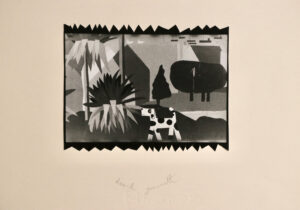 Hand cut photograph mounted on card. Signed on the front. Unique item