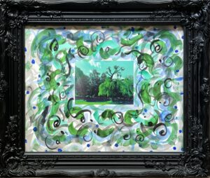 Digital photograph with watercolour and gouache in reclaimed frame